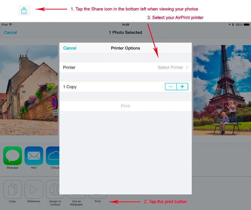 1. One of the simplest methods is to use an AirPrint printer. There are hundreds, if not thousands of printers that are AirPrint compatible. If you bought yours in the last couple of years then it's highly likely that it'll be compatible. See here for a list. Don’t worry if your printer isn’t on that list. There are several workarounds, some easier than others on this PC Advisor article. Bear in mind when printing yourself that the ink cartridges for some printers can be really expensive. My mother-in-law a few years back had a budget Dell printer for which it transpired the inks were so expensive, it would have been cheaper to buy a replacement model of the same printer every time (it came full of ink) rather than buy replacement cartridges. Bonkers I know. Also beware of unofficial inks. The price may seem attractive as they are often a fraction of the cost of the legit ones, but you know that old adage about something looking too good to be true?