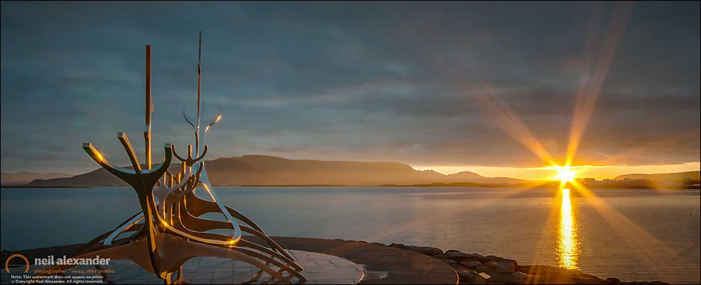 The Sun Voyager scultpure at sunrise in Rekyavik